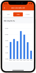 – Báo cáo thống kê tiêu dùng điện theo ngày, tuần, tháng, năm